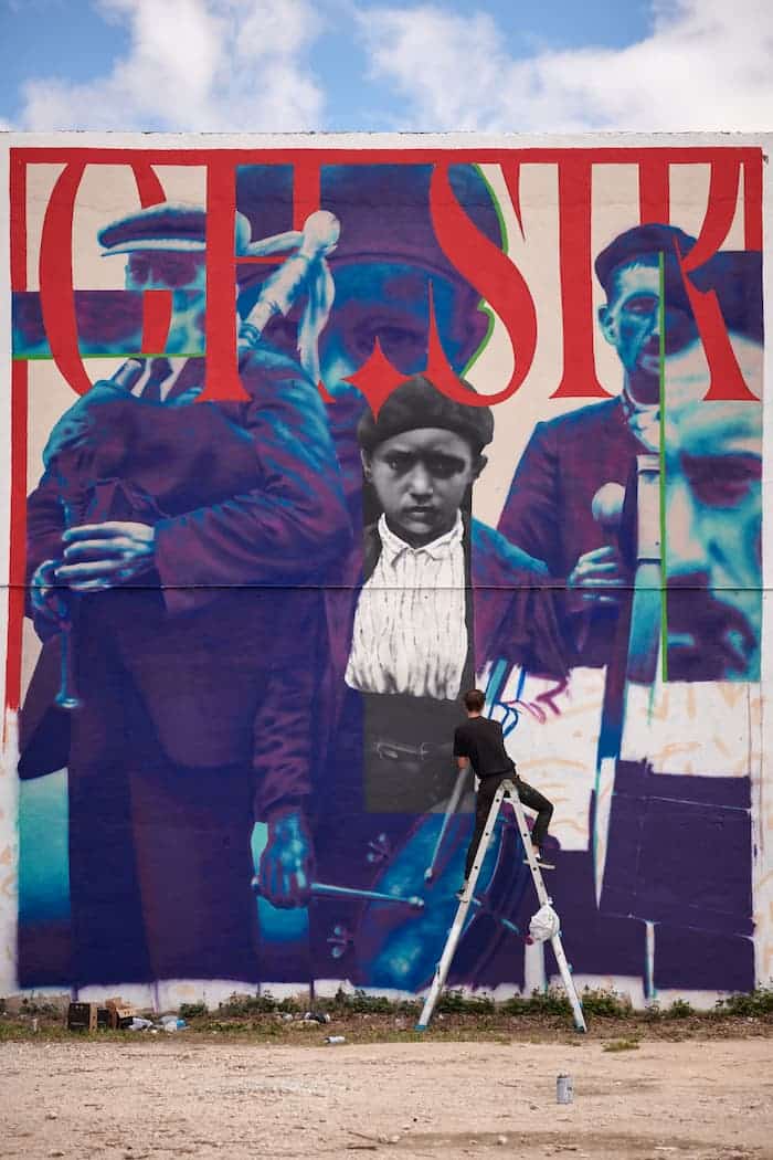 Esta fue mi aportación a la vigésima y última edición del festival Cantamañanas. En esta ocasión, la temática era libre, lo que me permitió volcar en el mural una reflexión más íntima. Decidí centrar la narrativa en mi propia relación personal y laboral con el arte en ese momento de mi vida, explorando las emociones, tensiones y motivaciones que atravesaban mi trayectoria artística entonces.